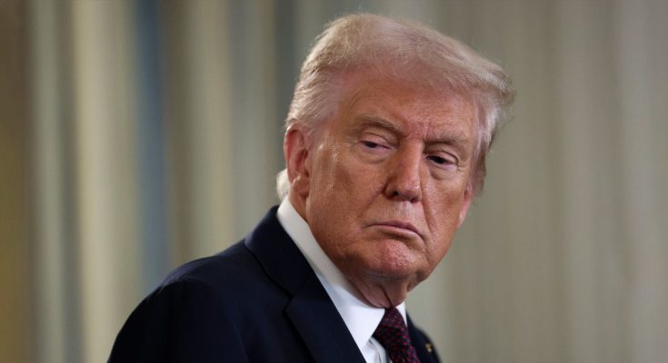 President Donald Trump stands by as attendees help a guest after he collapsed during an event on lowering drug prices in the Oval Office at the White House on November 6, 2025, in Washington, DC | Source: Getty Images