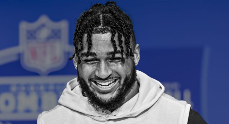 Marshawn Kneeland runs the 40-yard dash during the NFL Combine in Indianapolis, Indiana on February 29, 2024 | Source: Getty Images