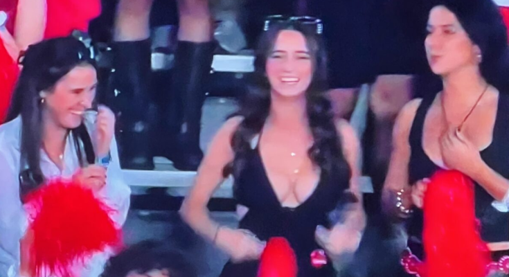 One female Georgia Bulldogs fan could be seen shaking her head in enjoyment, and her outfit was completely open in the middle, showing tons of cleavage.