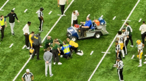 The 2022 28th overall pick was subsequently carted off the field.