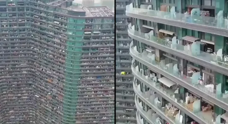 The building has gone viral on social media, with people left speechless at how many people live inside it.
