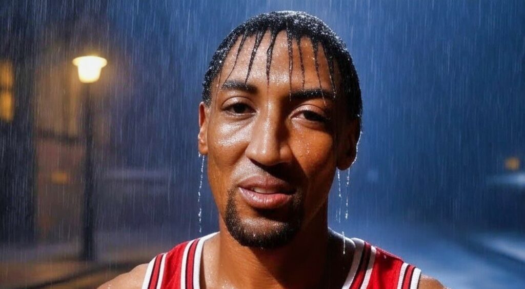 Scottie Pippen has recently started taking a liking to AI-generated images. He also sparked a debate recently by posting his AI-generated images for selling a historical item. Now, once again, the former NBA legend has come into the limelight for sharing a hilarious AI-generated picture of himself. The image in question showed Pippen under the rain. With water dripping down his hair, Pippen captioned the post, “Scottie Drippen… Keep it going LOL.”